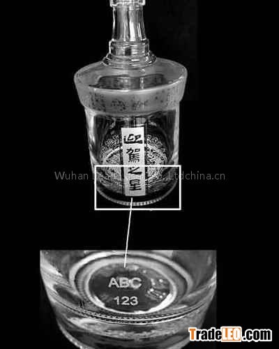 Application: Make the security code, regional mark, two dimensional code, logo, Code hopping, dynamic group code, micro-coding on the wall or bottom part of the glass bottle. These characters and images are subsurface engraving inside the glassware, keeping the surface smooth. never removed by medicinal liquid or grinding wheel, only damaged glass bottle you can get rid of the mark! Truly deep permanent security reached! At the same time, you can arrange another batch of mark or seal on the bottle cap or outside package. The new batch of mark or logo is on the surface of connection part (both up and down side), after that, a full set of security code is newly completed. The code or logo will be damaged once the bottle package is opened. by using of subsurface engraving & surface marking method, top grade security and logistic management purpose achieved.