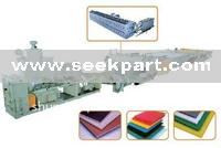 WPC sheet extrusion line for doors and windows is designed according to international latest technology, mixed PVC, PP, PE, PS with plant fiber symmetrically. It adopts high-efficiency conical double-screw extruder with forcible cooling system to extrude and form. The wood plastic panel out from our line has features of green environment protection, damp proof, antisepticise and not distortion, thus suitable for processing method of wood and can be recycled to reuse. It has been widely used in wide door, partition panel, construction template, base plate of container, furnish panel, etc.