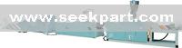 It contains conical twin screw extruder, mould, calibration table, , haul-off unit, cutter and stacker.