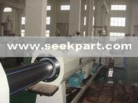 HDPE/MDPE pipe extrusion line designed by our company selected special extruder and adopted computer control. The screw has barrier unit and special material mixing components and barrel has new style grooves that achieve good plastication and mixing effect. The complete line assured great output and stable production. In addition, this line is equipped with special extruder for marking line of PE pipes.The extrusion line adopts the most advantaged spiral and lattice die head in the world, which assured stable extrusion in production process. In order to fit the performance of PE material and assure high production speed, we adopt water film lubricating and water circulation cooling. It has ellipse rectify device when producing huge diameter pipes. It has special designed vacuum and cooling devices that make good effect of huge diameter pipes extrusion.Haul off machine adopts three and six pedrails with European speed control system makes hauling stable and reliable. Cutting adopts planetary saw. The complete line has a high computer automatically control degree and long life span without maintenance. HUASU designed and developed this line on the basis of many years’ experience. We can do diameter scope from 12mm to 800mm, which widely used for water supply and gas distribution.