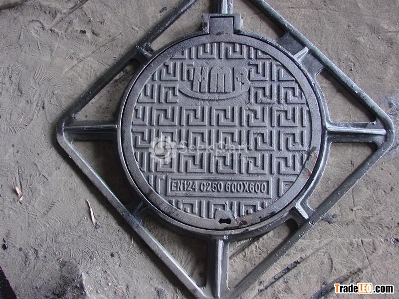 OUT SIZE:600x600 COVER SIZE:DIA 450 HEIGHT:50 MATERAIL:DUCTILE IRON STANDARD:EN124 C250 HINGED WITH LOCK.