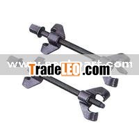 Involving a vehicle shock springs. The anterior solid base slider, two side have a solid on board, flat screw fixed in the upper plate with fixed slider, socket set in the slider, on a plate, below three fixed claw in at the bottom of the slider and claw, on the base of the casing above three fixed claw in the socket pin with the ring. Using upper and lower the three fixed claw, make the fixed shock springs for spring pressure caused by lateral bending or off pop-up wait for an accident, improve the security, shock absorber maintenance can be removed by rotating handle other fixed claw height adjustment, convenient use.