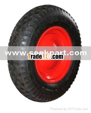 Item: PR1622 Used for wheel barrow or other hand trucks Size: 16 X 4.00-8 Rubber tyre with rubber innertube or butyle innertube Material: Pneumatic rubber tyre with steel rim and axle Ply rating:2PR or 4PR can be available Packing: In bulk Q'ty/20'FCL: 2300pcs | Our advantage:1.High quality 2.Good service 3.Punctual delivery time 4.Competitive price |