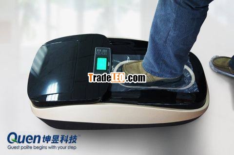 This automatic shoe cover machine uses the principle that the thermo shrinkable film will shrink at proper temperature. It is different from other shoe cover machines. This shoe cover machine only takes seconds to let the PVC film become shoe cover and cover your shoes. http://www.quen-tech.com/