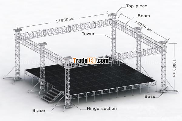 truss system is made of aluminum alloy main tube 50*3/4mm,brace 25*2mmdifferent size the max loading is different ,we choose the suitable truss according to your place dimension and the weight u would like to hangaluminum alloy 6082 or 6061T6the nomal size is below,we can also design the new products for your request1.1m/1.5m/2m/2.5m/3m/3.5m/4m, layer truss, H truss available 2 .Light exhibition truss 100mm*100mm/150mm*150mm/200mm*200mm/250mm*250mm3. 300mm*300mm/350mm*350mm/400mm*400mm/450mm*450mm/500mm*500mm4 Heavy duty truss 500mm*600mm/520mm*760mm/600mm*760mm/760mm*910mm5.Speaker truss:used for hanging audio or speaker,the materal is aluminium square truss.6.other special truss available .we can design it for you