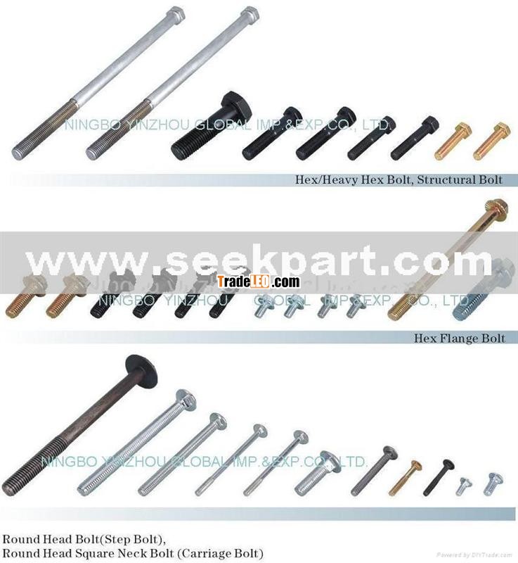 2) Hex cap screw, Hex head bolt ASME B18.2.1 grade 2 , grade 5, grade 8, Structural hex bolt, ASTM A325, DIN6914, Carriage bolt, Oval neck track bolt, Flange hex nut