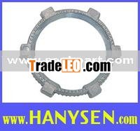 The Hanysen 1/2 - 4 in. Conduit Locknuts are designed to secure rigid and IMC conduit or various threaded fittings to steel outlet boxes or other metal enclosures. They provide a grounded connection and are suitable for indoor applications. Designed to cut through protective coatings on boxes and enclosures to assure ground continuity.
