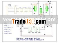 Lubricant is drained from reservoir (1) of Fig. C, and controlled through shut-off valve (2) of Fig. C, to the air treatment plant (3) of Fig. C, the details of which is separately given.Air bubble / foam-free oil, is then fed to the lubricant feed pump (4).The lubricant output pressure is regulated through shut-off valve (6), and pressure relief valve (5).The lubricant is further processed through a powerful magnetic filter (7.1), employing permanent magnets, which filters-off the metallic debris from the lubricant, while micro-pore strain filter cartridges (7.2) and (7.3), completes the filtration loop, thus ensuring air/ impurities free lubricant, to the supply line. Details of the filtration unit and circuit, is separately given in Fig. F. Lubricant is drained from reservoir (1) of Fig. C, and controlled through shut-off valve (2) of Fig. C, to the air treatment plant (3) of Fig. C, the details of which is separately given in Fig. E.