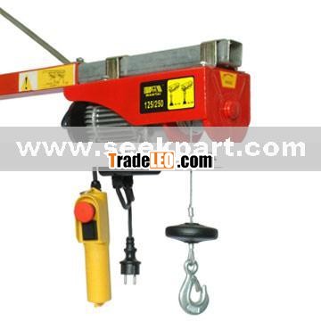Features:1) Complying with the IP54 standard, handling with emergency stop switch, and with brake and thermal protection device2) With single-phase power, 220V/230V and 110V power supply3) Lifting capacity: 100/200kg, 125/250kg4) Lifting height: 12/6m5) Lifting speed: 10/5m/minOuter packing: 2pcs/ctnCarton dimensions: 45 x 37 x 16cmN.W.: 22kgG.W.: 24kg