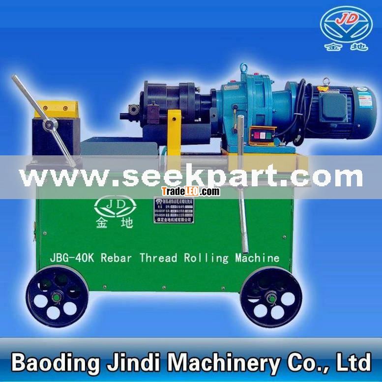 JBG-40E This machine is used to process rebar with dia from Φ14-Φ40mm and the max thread length can reach 200mm. It has the reasonable structure, the reliable performance and it is very convenient to use. The control part adopts the leakage protector and it can effectively keep the normal function of the equipment and guarantee safe.