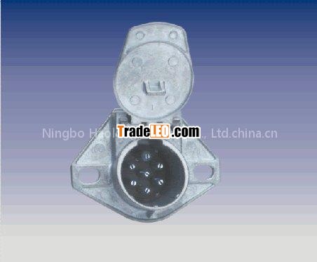 Socket for SAE J560 7-way coiled and straight cables. Split pins, Zinc Die-Cast housing & lid for durability and Stainless Steel hinge pin & spring.
