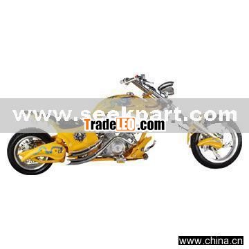 Description:Product Name: Mini Chopper (V-Twin Cylinder)Model Number: GS-091APlace of Origin: ChinaSpecifications: Model no.: GS-091A1) Engine: 49.5cc, V-twin cylinder, 4-stroke2) Speed: 45km/h3) Load: 150kg4) Fuel tank volume: 5.5L5) Starting system: electric starter/kick starter6) Transmission: chain7) Brake: front disc, rear disc8) Fire mode: CDI9) Wheel size: 2.75-14 (F), 205/30-11 (R)10) Material of hub: al-alloy11) Wheel base: 1,680mm12) Seat height: 470mm13) Ground clearance: 100mm14) Products dimensions: 2,150 x 800 x 880mmPacking: Carton dimensions: 1,480 x 450 x 660mmN.W.: 80kgG.W.: 90kg Conveyance: Qty/20' GP: 54pcsQty/40' GP: 120pcsQty/40' HQ: 158pcs