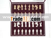Egyptian versus Assyrian Chess set made with hobby metal, hand casted and then one side sterling silver plated while the other side is hand spray painted in gold colour.