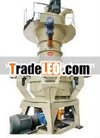 The motor drives the mill disc to rotate through speed reducer and drive the grind roller rotate through belt gear at the same time. The material falls on the center part of mill disc from the feed port and simultaneously the hot air enter the mill. Under the action of centrifugal force, the material moves to the mill edge, and is to be grinded by rolling and shearing when passing through the ring groove on the mill disc. The grinded material is blown up by high speed air from wind loop at the edge of mill disc. The large grains fall onto the mill disc and are grinded again. The material in the air stream passes through the classifier. The rotator makes the coarse grain fall onto the mill disc to be grinded again and the qualified fine grain come out of mill. And then the finished fine materials are collected in the powder collecting system. The fine materials with water content are dried by hot air and then achieve the required product moisture. The air is recycled and reused. During the circulation, the small surplus air is collected by the by-pass dust collector in this system with the lighter impurities, which forms a scientific and advanced process.