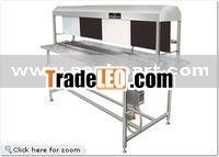 Inspection table is equipment consisting of a three - track conveyor with a hood with lighting arrangement and visual inspection background of alternate black & white color. Inspection table have stainless steel structure with moving S.S. slat chain. Structure made out of S.S. square pipe & supported on adjustable bolts.