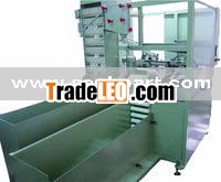 Connected with pressure feeders, put in bottles and lids manually, open switch power of touch screen and then press start button, the machine will work automatically such as feed bottles to filling heads and lids to capping heads. Manipulator transfers bottles to filling heads and material are filled in while at the same time it draws back bottles until filling is finished. Then cut ends start cutting with a high speed. After that, bottles are transferred to capping unit from left to right and capping and exhausting unit work together. Then bottles proceed to print unit. Finished bottles would be sent out of filling machine and being packed manually. (Package unit are under development)