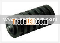 Impact rollers are used as carrying rollers instead of normal steel rollers at a loading point. On steel roller there are rubber rings assembled, side by side, to absorb the weight and impact of material falling onto the belt. At the same time impact rollers reduce the shock and vibration through the steel structure. The surface of Buffer roller/ Impact idler is made up by the cold series of elastic plastic ring and lock rings.