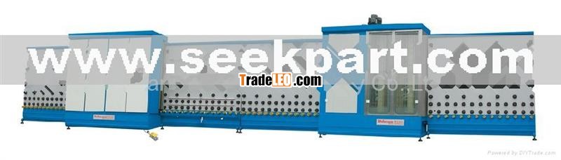 The production line is composed f vertical glass inspection transporter, vertical automatic glass scavenging dehydrator, vertical automatic aluminum frame locating machine, vertical glass flat pressing, vertical glass reversible transporter, binding machine ,butyl extruder machine, bicomponent rubber-beating machine, moleclar sieve bottler, and rotaiy rubber-spreading machine. The production line is composed with PLC programs and has adopted advanced Austrian technology and flat press mode which is quite popular in the world in the production of hollow glass.