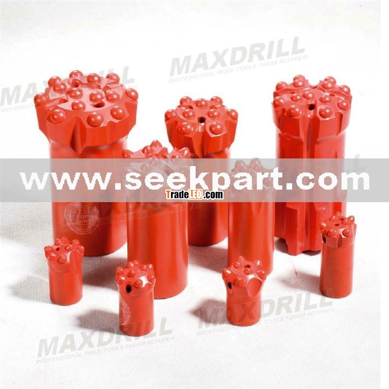 Thread Button BitThread button bits made with high quality of best quality alloy steel bar and tungsten carbides, through heat treatment so that it can withstand the toughest rock drilling demands, and transmit intensive impact energy into the rock with the least possible loss of energyAccording to different drilling application, we have different design to meet customers with good quality and good price .No matter what kinds of rock-Soft rock, loose-mediumrock, hard rock and any other special formations, just tell us what you need and leave others at our disposal, we will handle the following, our special Tailored service is waiting for you upon your demand.(1)Thread: R22, R25, R28, R32, R35, R38, T38, T45, T51, ST58, T60(2)Diameter: 38-127mm.(3)Package: in wooden case or in carton.(4)Productivity: 10000pcs/ month