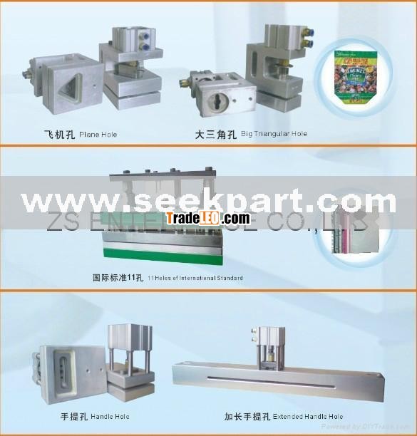 we supply pneumatic hole punch device. Used to make various holes on polybag and paper,such as butterfly hole ,round hole ,handle hole ,plane hole and so on.