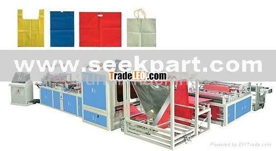 This machine applies for non-woven materials.It can make many kinds of bags such as vest bags,loophandle bags,flat bags,and ribbon-through bags for shoes and purse ect.It is equipped with computer touch screem,step motor to control the length and photo electricity to track,accurately and steadily.There are control devices like