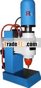 JM3TQ-D is a kind of small sized pneumatic radial riveting machine, to compare with the JM3TQ-B and JM3TQ-C, the power head stroke of JM3TQ-D is more longer (the maximum stroke is 40 mm). It has the advanced radial technology and the movement path likes 11 pieces plum blossoms shape, this machine uses a head screw pole to go up and down to control the power head, it has the enlarged bench, and air current double-direction adjusting valve to controlled the riveting speed effectively .The electricity system added the counter to count the work piece which was be processed, he time relay control the riveting times. All the electricity components are the takes famous brand to use. The T-slot on the bench can fix the clamping tool available, and air-current added the inhalator it has function of filter. The power head can match the tiny-scale device and control box can match the touch LCD screen. The surface are beautiful and smoothly after processed with high efficiency.