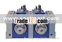 TWIN ELECTRICAL PRELOAD SYSTEM, which is to directly connected two sevo motors with the input side of this system and the operating load burden mutually by two output oinions, one is set as driving while other one is brading, to achieve the backlash-free.This preload system has successfully entered global markets.