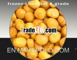 under bacteria-free conditionsSpecificationDescription of goodsBright color ,smooth surface,tastesweet glutinous and delicious,rich in nutritionEfficacy andfunctionchestnuts contain rich unsaturated fatty acids ,vitaminsand minerals.These materials can prevent hypertension, coronaryheart disease, arteriosclerosis, osteoporosis and other diseases.Itis a kind of anti-aging, longevity-keeping tonic.packing50g/bag,100g/bag,150g/bagadvantageOur company has passedISO9001 international quality system certification, HACCPcertification and JAS certification.We will supply you first-class service, excellent quality, and preferentialprice.Raw materials of Chinese chestnut are from Zunhua and Qianxiarea along Yanshan mountain chains.After beingrinsed, sauted,peeled, packed and quick-frozen steps,it is finally made up in aclosed and aseptic condition. We will supply you first-class service, excellent quality, and preferentialprice .Looking forward to your sincere cooperation! FROZEN PEELEDAND ROASTED CHESTNUTS