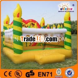 Item No.???WSC-045 Name???Cake Fun BounceSize???4x4x2.9m&5x5x3.6m Material???0.55mm pvc tarpaulinProduct Introduction??? Good PVC coated material, skillfulworkmanship, reinforced double stitches, to make sure my productsstrong enough to step on, move, transit and use a long time.Climbing section with long strip or square hard sponge ProtectiveScreening to protect kids from felling off Jumping surface withfirm coated PVC material, reinforced protective strap to extend itslong use life span Double strength stitching to make sure thatproduct is firm and extend use life span Wind ring at the bottom ofinflatable bouncer and slide to fix product Air Outlet linked withimported zipper, velcro zipper cover, it is well sealed afterinflated; conveniently and quickly when need to deflated Blowerpipe 1.5-2 meters long PVC blower pipe to make sure that blowsmoothly Accessories repair patch; glue (for sea transit, glue isincluded,but for air transit and courier, it is prohibited) Airblower CE or UL Certificated air pump with enough power, specialplug is available Packing Material with inner carpet, and outer PVCbag; firm and tidy packing, which is strong enough to long journeytransit Our products include: inflatable amusements parks, Waterinflatable products, Inflatable slides, bouncy castle, Smallbounces for family use, Inflatable cartoons, inflatable advertisingproducts(Inflatable arches, inflatable tent, air dancer), Watertrampolines, Swimming pools, bumper boats and paddle boat and soon, to take you much fun.