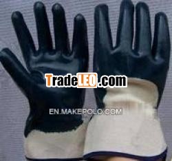 Description: flannelettle lining, safety cuff, coated with darkblue nitrile, open back ,size available in 9. 5, 10, 10.5