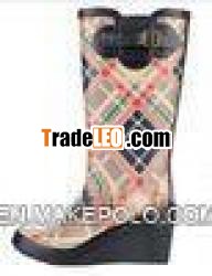 *Rubber upper with a beautiful pattern around the shaft help to keep feet dry andfashionable.