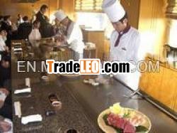 3. Chef cook food and serve customers on teppanyaki table, whilecustomers see chef cooking show and enjoy tasty food sittingaround.