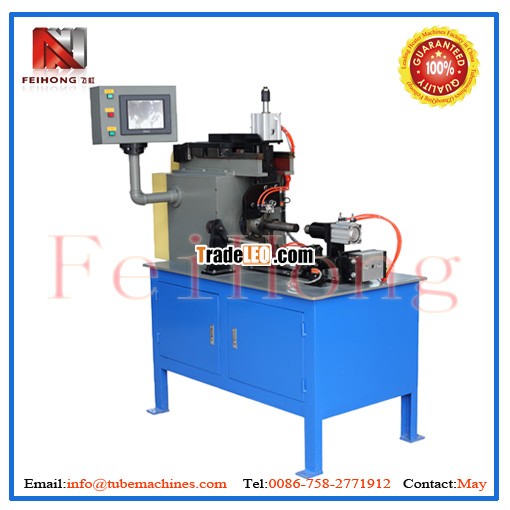 This is a machine specially for bending the rolls with flat hot running system into helix-shaped heater. It is also applied to coiling and processing small-diameter tube electric roll heaters. The core shaft is driven by the step motor (the core shaft can be replaced). The core shaft is ingeniously equipped with air-powered clamp splice, which is to clamp the heater tube tightly with the pneumatic mechanism, and coil the heater tube in the direction of the axis. The machine has an automatic stripper mechanism, and is controlled by PLC with high efficiency.
