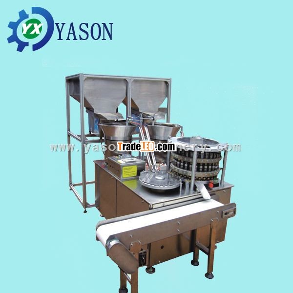 2.Working procedure:Firstly feed aluminum parts and plastic parts into the individual electromagnetic hopper,then both caps go through the chutes to the arrange table,Finally the caps are assembled by the heated assembling punches.