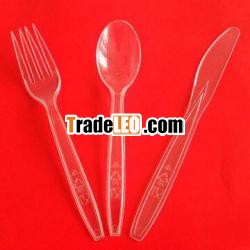 Dessert Serveware with Transparent Knife, Fork and Spoon, Made of PS