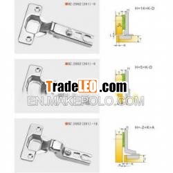 Item No: BZ2002 Material: Iron Finished: Nickel Angle of opening: 105° Depth of hinge cup: 11.5mm Diameter of hinge cup: 35mm Diameter of door(K): 3-7mm Range for door thickness: 14-24mm Two hole distance of hinge cup: 48mm