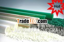 Features 1.Material: Random Polypropylene (Hyosung R200P) 2.Size: full 20mm through 160mm availability 3.Pressure Rating: 1.25MPa, 1.6MPa, 2.0MPa,2.5MPa 4.Colors:Light grey or white, pipe for cold water is marked withblue stripes, pipe for hot water is marked with red stripes.Othercolors are also available upon request. 5.Form Supplied:4 or 6 meters straight length (all size) . Otherforms are also available upon request. 6. Standard: GB/T 18742.2-2002 , Gernamy StandardDIN8077/8078 7.Connection: socket fusion joint, electro fusion joint ortransition joint Applications 1.Cold and hot water supply. 2.Heating system including flooring heating, wall heating andradiant system. 3.Central air conditioning system. 4.Industrial liquids transportation. Advantages: 1. High Temperature Resistance: the maximum sustained workingtemperature is up to 70 Degrees Celsius, the maximum transienttemperature is up to 95 Degrees Celsius. 2. Heat Preservation: low thermal conductivity which is only 1/1500of brass pipe, and 1/250 of steel pipe. 3. Non-toxic: no heavy metal additives, would not be covered withdirt or contaminated by bacterium. 4. Corrosion Resistant: resist chemical matters or electronchemical corrosion. 5. Lower Installation Costs: light weight and ease of installationcan reduce installation costs by as much as 50% over metal pipingsystem. 6. Higher Flow Capacity: smooth interior walls result in lowerpressure loss and higher volume than metal pipes. 7. Long Life: more than 50 years under normal conditions 8. Recycled and Environment-friendly. Top quality PP-R pipe PN20 |