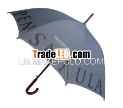 PromotionClassic Vintage Style Design Solid Color Storm Straight Auto WoodenHook Handle Printing Umbrella