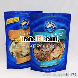 ngest shelflife; matt OPP/ AL/ PE; PET/ VMPET/ PE;matte OPP/ VMPET/ PE; PET/ VMPET-PET/ PE allowclear window in one side;PET/PE and NY/PE are for transparant bags.3. Style: stand up with zipper bag, three sidesealed bag, Quad-sealing bags.4. Print: Rotogravure to 12 colors, attractive designs.Customers'' printing designs or logos available.5. Suit for shopping, stores and home.6. Waterproof and recyclable material, environmentfriendly.7. Supply period:all the year rounda