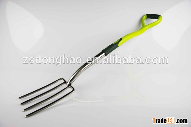 | garden fork: | stainless steel , plastic handle |