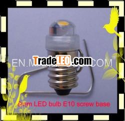 | bulb, miniature lamp, lamp bulb, E10base. 2.5V ~14V warm white LED long life L8E-series, E10 screw base 8mm Power LED Bulbs with I.C. inside **Design patented** (A) 8mm Power LED (Light Emitting Diode) with E10screw base. (B) Power consumption of LED: 0.5Watt (C) L8E-2C-series must be operated by D.C.:bottom point ( positive), side contact (- negative) L8E-3C and4C-series may be operated by D.C. or A.C. (D) Electronic and Optical Characteristics : Ta =25°C (WW)Warm white:2600~3400K, (NW)Neutral white:3500~4600K, (CW)Coolwhite:4700~6500K. * Maximum safe operating Voltage. (E) LED Life time: 50,000 hours under correcttesting conditions, Vf=3.1V, If=60mA, Ta = 25°C. (F) Usages: Replace ordinary screw base bulb. (G) It gives steady HIGH brightness of light. (H) Completely withdraw energy of batteries, lowerpower consumption. (I) Lighting Color: available inwhite (cool white, neutral white and warm white), red, green, blue,and multi color flashing. (J) Marking on base: | |||||