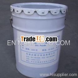 | Zinc anticorrosive paint production: Theanticorrosion of steel components is the main application ofmetallic zinc, and ways of coating include hot dip, electroplating,thermal spraying, zinc-rich coatings and powder plating, of whichhot dip is the main way. Zinc-rich coatings are mainly applied forlarge components for which hot dip and electroplating are notsuitable, such as large outdoor steel structures (oceaneering,bridges, pipelines, highway guardrails, etc.), ships andcontainers. Zinc-rich coatings can be divided into organiczinc-rich coatings and inorganic zinc-rich coatings based on thedifference of film forming material. Organic zinc-rich coatingsusually take epoxy ester, epoxy resin, chlorinated rubber, vinylresin and polyurethane resin as the film forming material and thecontent of zinc powder in dry film reaches up to 85% -92%.Inorganic zinc-rich paints take water lithium silicate, waterpotassium silicate, ethyl orthosilicate or cement paste asmaterial, and the content of zinc powder in dry film reaches 92%.The mean particle size of zinc powders for coatings purposeconsists of two specifications: 2-3μm and 5-7μm. The powders aredistributed in narrow fraction and they have gooddispersibility. | ||||||