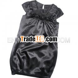 1.Material of dress is 100%poly.2.Handwork ball-flower below neckline.