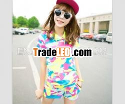 Fabric: CottonStylish Colorful Camouflage Hooded Tracksuit Green Productdescription