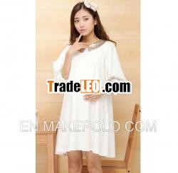 FABRIC blendsElegant PailletteDecorated Half Sleeve Maternity Dress White Productdescription