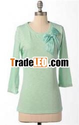 Dear All Long sleeve slub knit tee with satin bow applique detailDear All,