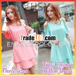 Hot Sale 2013 New Arrivals Korean Style Chiffon A-line Off The shoulder Ruffles Women's Above Kn