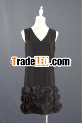 V Neck Black Short Knitted Dress with Organza Patels on Hem BM0006