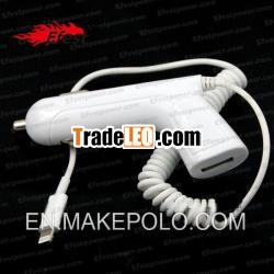 Cool gun shape white car charger for iphone/Samsung galaxy/HTC/Blackbarry mobile phones with USB cab