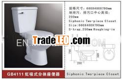 Two-piece toilet: ceramic, siphon flushingMaterial: Ceramic